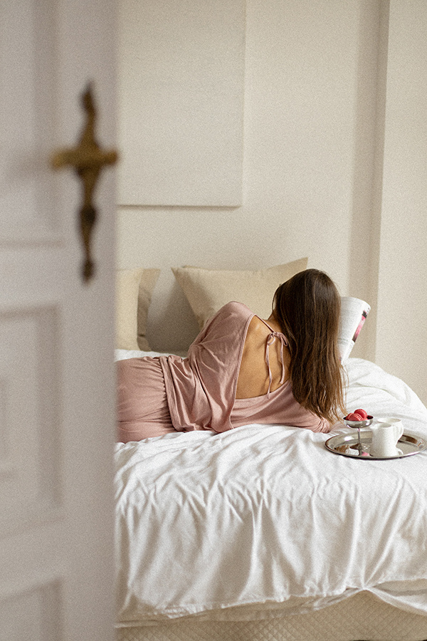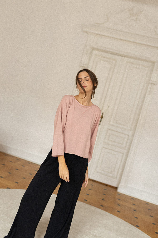 Bluzka Iliana to wyjątkowe połączenie klasyki i zmysłowości — model z długim rękawem, który zaskakuje efektownie wyciętymi, motylkowymi plecami. Z tyłu, przy szyi, znajduje się subtelny pasek, który zapobiega zsuwaniu się bluzki z ramion, zapewniając komfort i stabilność noszenia. Iliana doskonale komponuje się zarówno z długimi spodniami Yasmine, jak i szortami Madalene, tworząc stylowy zestaw na noc lub leniwy dzień w domu. To nie tylko element nocnej garderoby — bluzka sprawdzi się również podczas zajęć jogi czy pilatesu, oferując pełną swobodę ruchów i wysoki komfort termiczny dzięki zastosowaniu miękkiego, oddychającego modalu. To model, który pozwala czuć się swobodnie, kobieco i stylowo — niezależnie od pory dnia.