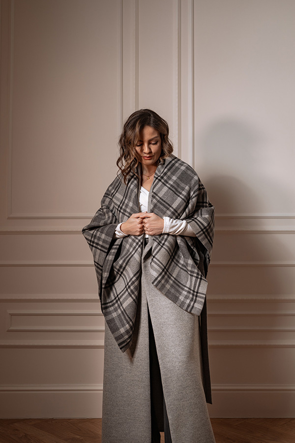Powraca chusta Rosalind Gris – w interesującym, szarym odcieniu z klasyczną kratą, wykonana z najwyższej jakości włoskiej wełny oraz alpaki merino. To idealny dodatek do stylizacji, który może pełnić także funkcję lekkiego okrycia wierzchniego. Zapewnia ciepło w chłodniejsze dni, a jej ponadczasowy wzór pięknie komponuje się z basicowymi zestawami, dodając im charakteru i komfortu. Można ją stylizować z płaszczem Carlotta Gris lub kamizelką Le Magnifique Gris z kolekcji Amore Mio, tworząc spójną, elegancką całość. Chusta jest cieplejsza niż jej siostrzana wersja Rosalind Chocolate, dzięki czemu świetnie sprawdzi się również w chłodniejsze miesiące.