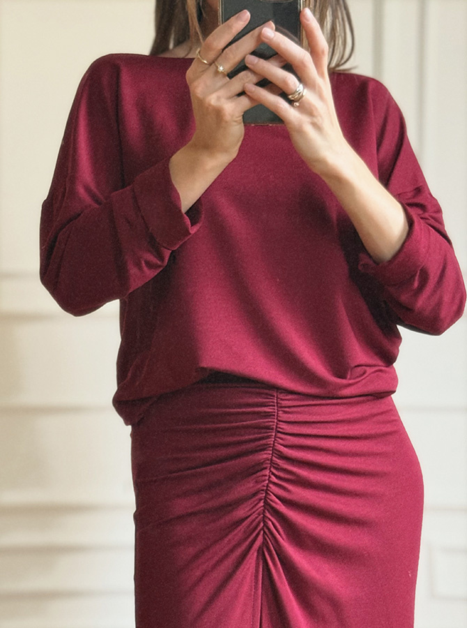 Neli Vino, która pasuje do wszystkiego. Bluzka Neli w kolorze mokka to idealna baza do stylizacji przez cały rok. Wykonana z miękkiej modalowej tkaniny z dodatkiem elastanu, jest wyjątkowo przyjemna dla skóry i zapewnia pełen komfort noszenia. Pięknie wykrojony dekolt możesz nosić zarówno z przodu, jak i z tyłu — w zależności od nastroju i okazji. Podwinięte rękawy dodają sylwetce lekkości i nonszalancji. Neli to uniwersalny model, który dopasuje się do Twojego stylu.