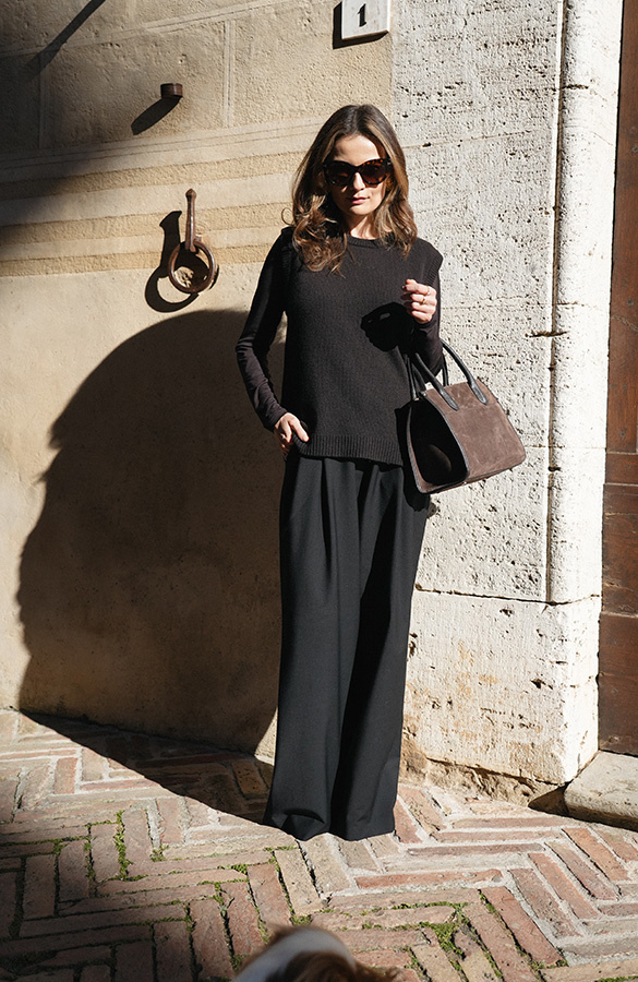 i kaszmir, zapewniając wyjątkową miękkość, ciepło i komfort noszenia. Jego czekoladowy odcień dodaje stylizacji elegancji i wyrazistości. To niezwykle ciepły i otulający model, idealny na chłodniejsze dni. Świetnie komponuje się z płaszczem Carlotta, a także tworzy spójną, kobiecą stylizację z kamizelką Giovanna Chocolate. Można go nosić klasycznie — do płaszcza, jako stylowy akcent outfitu, ale również jako ciepłe okrycie w biurze czy w podróży. Clarissa Chocolate to szal, który łączy funkcjonalność z ponadczasowym stylem — idealny dodatek do jesienno‑zimowej garderoby.