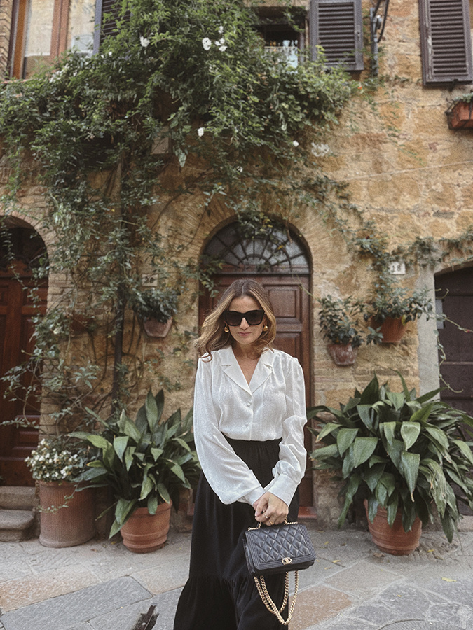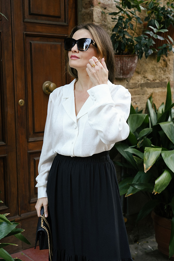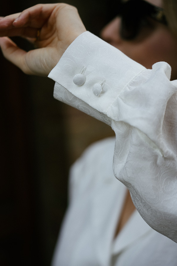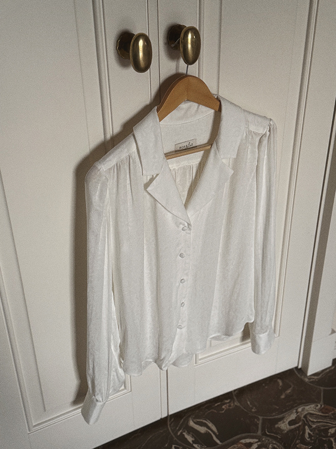 Koszula La Parisienne Classy po raz kolejny wraca do Roselle — w klasycznym kroju i białym kolorze, który nigdy nie wychodzi z mody. Uszyta z wysokogatunkowej, delikatnej bawełny o wyjątkowej fakturze, zapewnia komfort noszenia i subtelnie układa się na sylwetce, dodając stylizacji elegancji. Jej lekko oversize’owy fason oraz długi rękaw zakończony mankietami nadają jej klimatu vintage, który łączy w sobie szyk dawnych dekad z nowoczesną swobodą. Koszula posiada powlekane guziki — to detal, który świadczy o wyjątkowej dbałości o wykończenie. To model wszechstronny i niezawodny — sprawdzi się zarówno w casualowych stylizacjach, jak i w bardziej eleganckim wydaniu. Można ją nosić saute, przewiązać na top lub sukienkę — La Parisienne Classy dopasuje się do Twojego stylu. Świetnie komponuje się również ze spódnicą jedwabną La Bohème Noire z tej samej kolekcji, tworząc szykowny, kobiecy zestaw na wiele okazji.