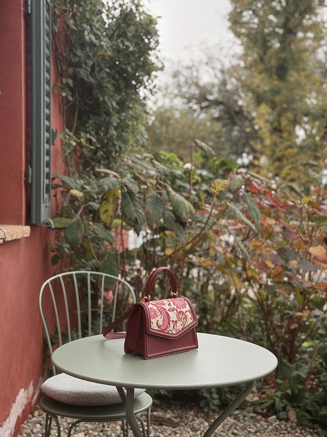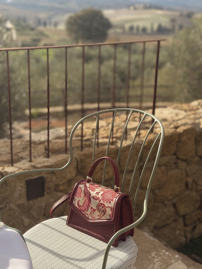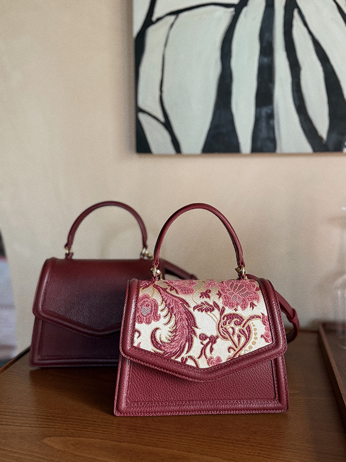 Damska torebka skórzana Florence Bella Bordeaux to wyjątkowy model z najnowszej kolekcji torebek Roselle. Jest mniejsza od kultowego Bellagio, ale zachwyca elegancją i funkcjonalnością. Idealnie sprawdzi się podczas romantycznej kolacji, eleganckiego wyjścia czy spotkania przy kawie z przyjaciółką. Choć niewielka, Florence Bella Bordeaux jest bardzo pojemna. Zapinana na magnes, kryje w środku trzy kieszenie, w tym jedną zapinaną na ekspres, przeznaczoną na cenniejsze drobiazgi. Można ją nosić w ręku dzięki eleganckiemu uchwytowi, a także na ramieniu, ponieważ posiada regulowany pasek, który zapewnia wygodę i dopasowanie. Całość dopełniają złote dodatki, podkreślające jej luksusowy charakter. Wyjątkowym elementem tego modelu jest materiał sprowadzony prosto z Wenecji, zdobiący torebkę florystycznym motywem w odcieniach czerwieni, złota i beżu. Ten detal czyni ją unikatową i niepowtarzalną, sprawiając, że Florence Bella Bordeaux staje się nie tylko praktycznym dodatkiem, ale także małym dziełem sztuki z piękną historią tworzenia. To torebka, obok której nikt nie przejdzie obojętnie.