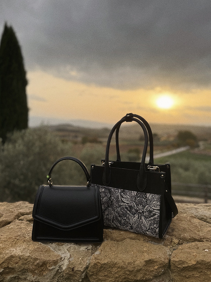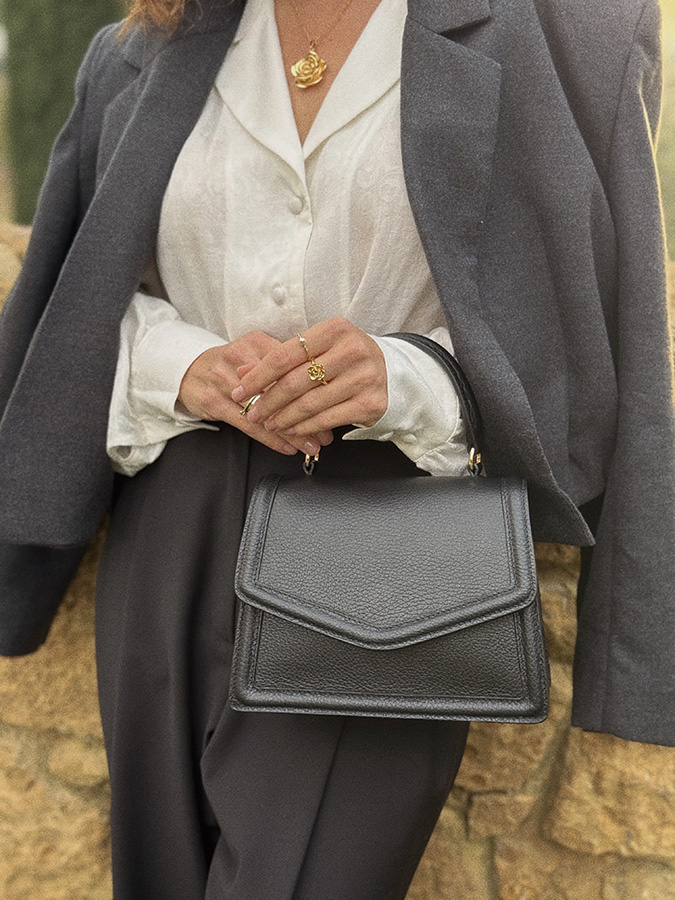 Damska torebka skórzana Florence Nero to drugi model wśród najnowszej kolekcji torebek Roselle. Jest mniejsza od kultowego modelu Bellagio, ale zachwyca swoją funkcjonalnością i elegancją. Idealnie sprawdzi się w stylizacjach na wyjątkowe okazje – romantyczną kolację, eleganckie wyjście czy spotkanie przy kawie z przyjaciółką. Choć niewielka, Florence Nero jest bardzo pojemna. Zapinana na magnes, kryje w środku trzy kieszenie, w tym jedną zapinaną na ekspres, przeznaczoną na cenniejsze drobiazgi. Torebkę można nosić w ręku dzięki eleganckiemu uchwytowi, ale także na ramieniu, ponieważ posiada regulowany pasek, który zapewnia wygodę i dopasowanie. Całość dopełniają złote dodatki, nadające jej luksusowego charakteru. Florence Nero torebka, która łączy subtelną formę z praktycznym wnętrzem, stając się idealnym uzupełnieniem kobiecej garderoby.