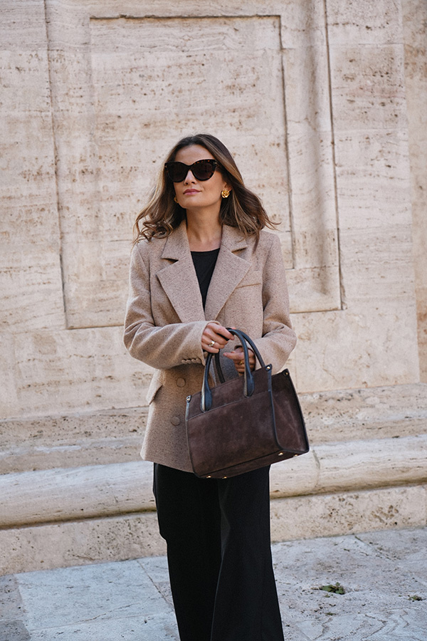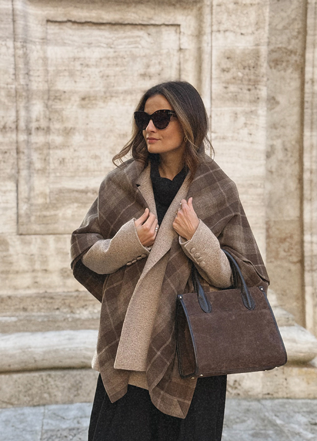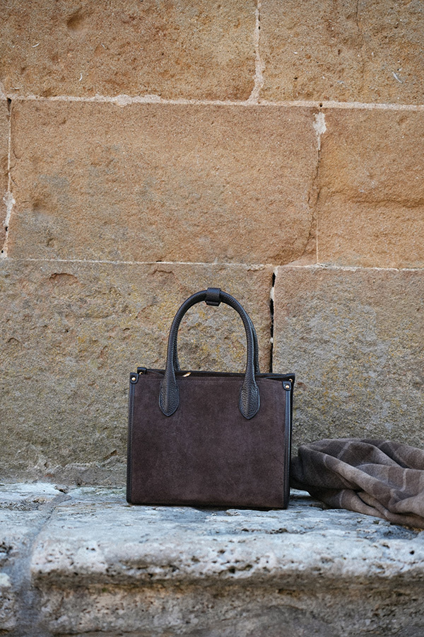 Damska torebka skórzana zamszowa Bellagio Cioccolato to nowość w kolekcji Le Cose Belle i zarazem premiera torebek Roselle. Wykonana we Włoszech, w samym sercu sztuki – Florencji – zachwyca starannością wykonania i ponadczasowym stylem. Jej piękny czekoladowy kolor sprawia, że w zależności od zestawienia kolorystycznego doskonale komponuje się z brązami, szarościami, khaki i wieloma innymi odcieniami, stając się uniwersalnym dodatkiem w każdej garderobie. Torebka została uszyta z najwyższej jakości skóry zamszowej, a jej spód chronią cztery stopki ochronne, które zabezpieczają przed zabrudzeniami. Subtelne sygnowanie nazwą marki podkreśla jej elegancki charakter. Model posiada zewnętrzną kieszeń zapinaną na magnes, a wewnątrz mieści główną komorę, małą kieszeń zapinaną na ekspres oraz dwie mniejsze, niezapinane kieszonki. Można ją nosić zarówno w ręku, jak i na ramieniu, dzięki odpinanemu paskowi, który dodaje funkcjonalności. Bellagio Cioccolato to torebka, która w garderobie każdej kobiety będzie wyglądała jak małe dzieło sztuki – elegancka, praktyczna i ponadczasowa.
