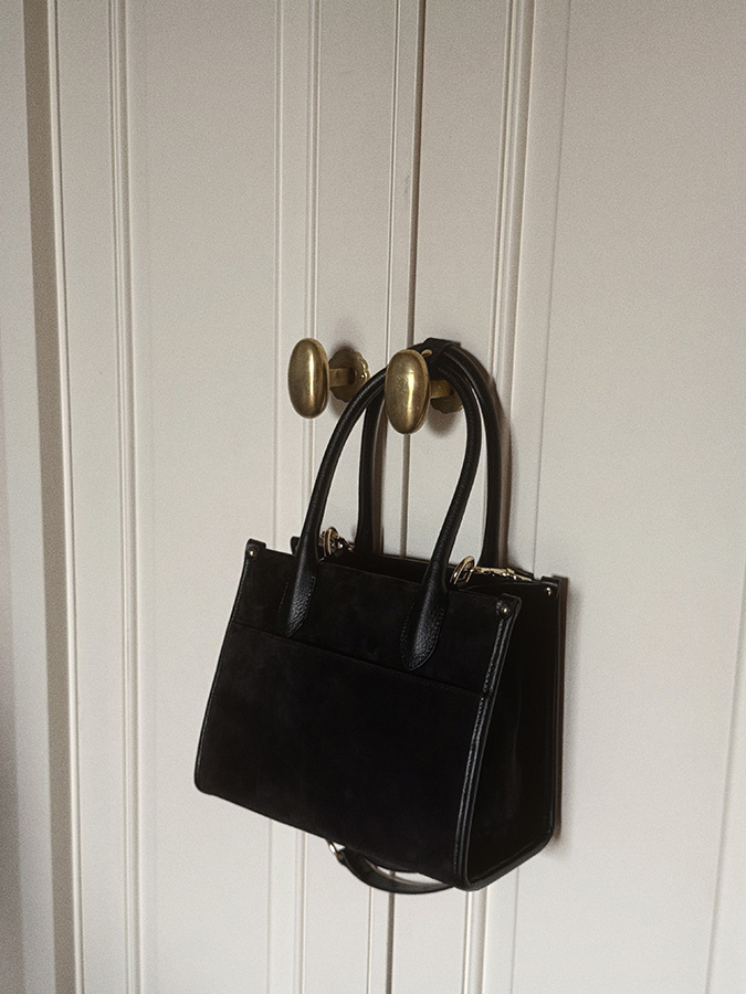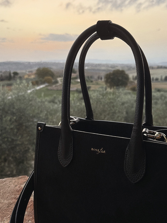 Damska torebka skórzana zamszowa Bellagio Nero to elegancka nowość w kolekcji Le Cose Belle, wykonana we Włoszech, w samym sercu sztuki – Florencji. Uszyta z najwyższej jakości skóry zamszowej, zachwyca ponadczasowym stylem i starannością wykonania. Jej klasyczny czarny kolor sprawia, że doskonale komponuje się z każdą stylizacją – od codziennych zestawów po bardziej formalne okazje. Model wyróżnia się subtelnym sygnowaniem nazwą marki oraz złotymi elementami, które dodają mu luksusowego charakteru. Spód torebki chronią cztery stopki ochronne, zabezpieczające przed zabrudzeniami. Torebka posiada praktyczną kieszeń zewnętrzną zapinaną na magnes, a wewnątrz mieści główną komorę, małą kieszeń zapinaną na ekspres oraz dwie mniejsze, niezapinane kieszonki. Można ją nosić w ręku lub na ramieniu, dzięki regulowanemu i odpinanemu paskowi, który zapewnia pełną wygodę i dopasowanie do indywidualnych potrzeb. Bellagio Nero torebka, która w każdej garderobie będzie wyglądała jak małe dzieło sztuki – elegancka, praktyczna i ponadczasowa.