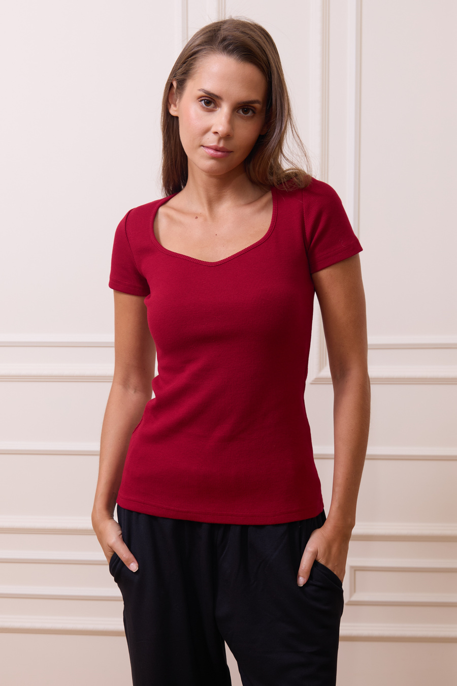 Nasz bestsellerowy, dopasowany T-shirt z krótkim rękawem wykonany z elastycznej, mocno rozciągliwej bawełny z dodatkiem elastanu, w klasycznym odcieniu szarości. T-shirt posiada oryginalny dekolt, który dodaje lekkości i eksponuje obojczyki. La Base Bordeaux stanowi uniwersalny, całoroczny element garderoby.
