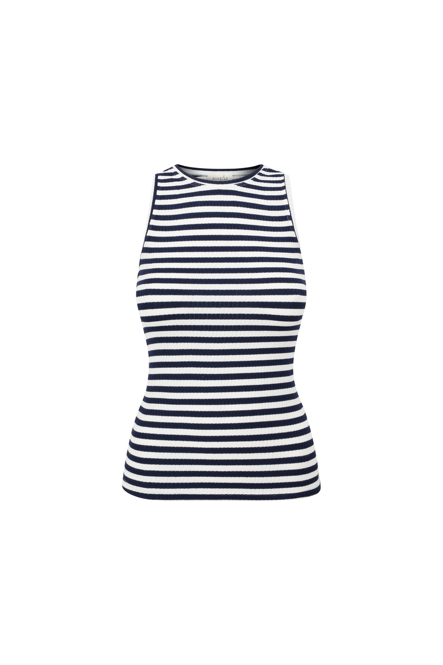 Klasyczny top pod szyję to wyjątkowy element garderoby, który stanowi świetną bazę wielu stylizacji. Top na szerszych ramiączkach w odcieniu ecru z granatowymi paskami wykonany jest z wyjątkowo elastycznej i przyjemnej dla skóry wiskozy z elastanem. To komfortowy fason, który sprawdzi się idealnie pod marynarki, swetry, czy jeansową katanę.
