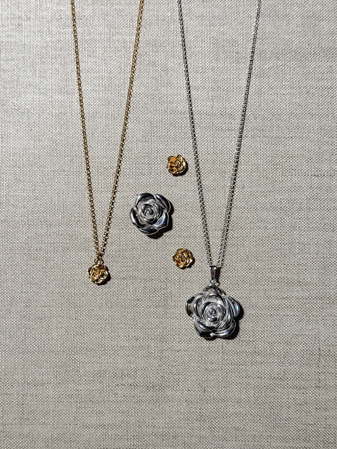 Naszyjnik Fiore Rosa D’Argento N°4 został wykonany w małej, toskańskiej manufakturze ze srebra próby 925. Delikatny łańcuszek zwieńczony większym wisiorkiem w kształcie róży nadaje mu romantycznego charakteru i sprawia, że staje się bardziej wyrazistym akcentem niż subtelny model Picollo Fiore Rosa D’Argento N°12. To propozycja dla osób, które pragną biżuterii o klasycznym, kobiecym stylu, ale jednocześnie chcą, aby naszyjnik stanowił centralny element ich stylizacji. W połączeniu z pozłacanymi kolczykami Rosa D’Oro N°2 tworzy elegancki zestaw inspirowany włoską tradycją jubilerską.