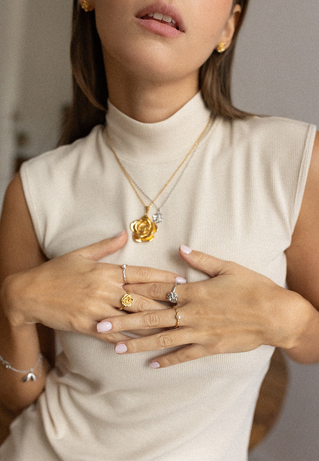 Aby cieszyć się blaskiem biżuterii jak najdłużej, unikaj kontaktu z wodą, perfumami i detergentami. Przechowuj biżuterię w suchym miejscu. Rekomendujemy nasze pudełko, w które zapakowaliśmy Twoje skarby.