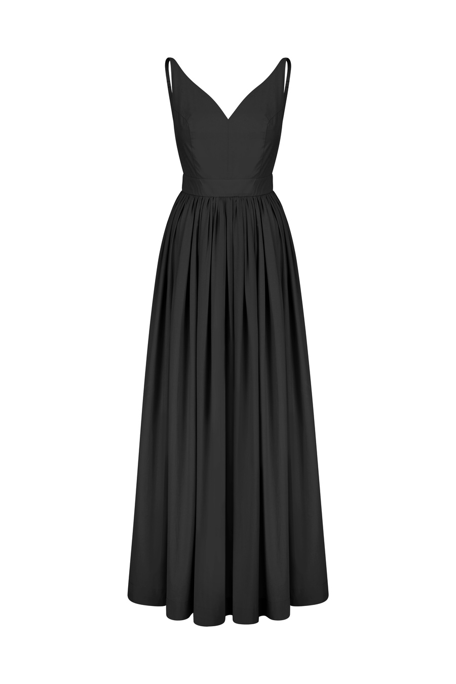 Nowość w Roselle. Sukienka maxi Concerto Nero w klasycznej czerni to ponadczasowa elegancja. Wykonana z wysokogatunkowej bawełny premium. Głęboki dekolt w kształcie litery V oraz dopasowana góra podkreślają kobiecą sylwetkę, a rozkloszowany dół nadaje całości lekkości i szyku. Dzięki elastycznym wstawkom po bokach w pasie oraz regulowanym ramiączkom sukienka idealnie dopasowuje się do kształtów ciała, zapewniając maksymalny komfort noszenia. Z tyłu dyskretnie wszyty suwak ułatwia zakładanie.