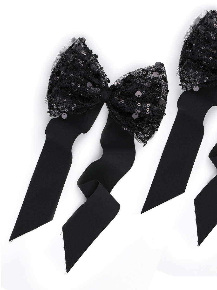 W zestawie z sukienką sprzedawane są ozdobne kokardy, które możesz zawiązać na różne sposoby, aby jeszcze bardziej podkreślić elegancki charakter sukienki.
