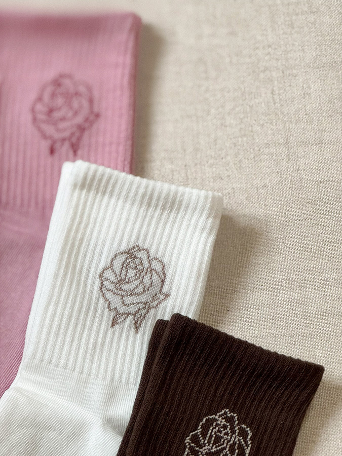 Zestaw skarpetek Buona Giornata składa się z trzech par: Roselle Rose, Roselle Chocolate oraz Roselle Creme. Wszystkie modele powstają w Polsce z wysokiej jakości, miękkiej bawełny, która przyjemnie otula stopy i zapewnia komfort noszenia przez cały dzień. Każdą parę zdobi nasza autorska róża — subtelny, kobiecy detal dodający im wyjątkowego charakteru.